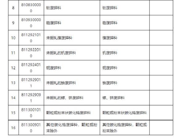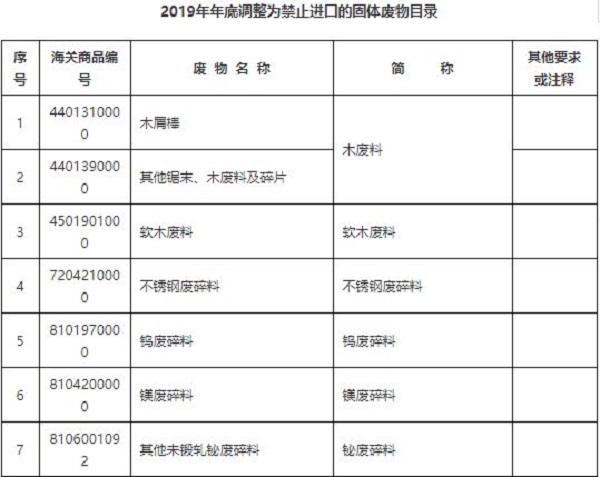 二、将不锈钢废碎料、钛废碎料、木废碎料等16个品种固体废物(见附件2),从《限制进口类可用作原料的固体废物目录》《非限制进口类可用作原料的固体废物目录》调入《禁止进口固体废物目录》,自2019年12月31日起执行。