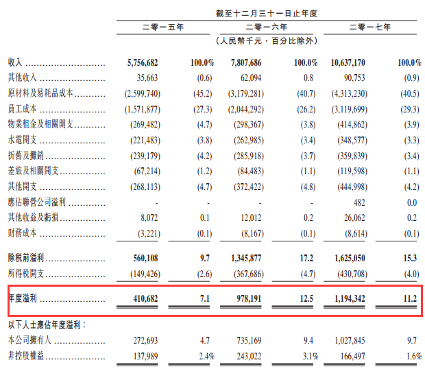 5月17日,海底捞在港交所递交上市申请,资料显示,其2017年营收为106.37亿元,年度利润为11.94亿元。