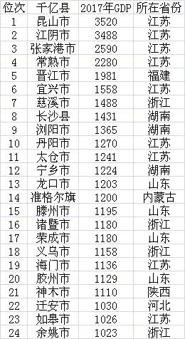 表:2017年GDP千亿县