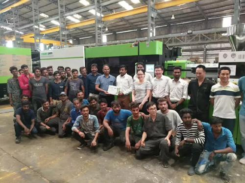 今年6月30日,伊之密印度公司投产一年之际,第100台注塑机也顺利出机,交付的客户为CJ polytechnic,是印度南部一家知名家电公司,主要生产冰箱、电视、空调等家电塑料配件,为博世、三星等品牌配套。目前已采购了伊之密多台UN650A5。