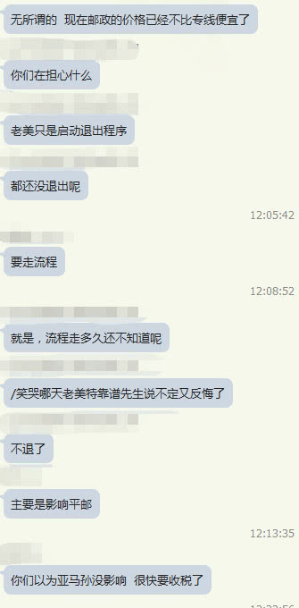 初此之外,界面新闻发现跨境平台商家们对此似乎也不是很担忧,有商家表示,现在邮政价格其实并不算太低,另外美国要退出流程要走相当长时间,未必最后就一定能成功。