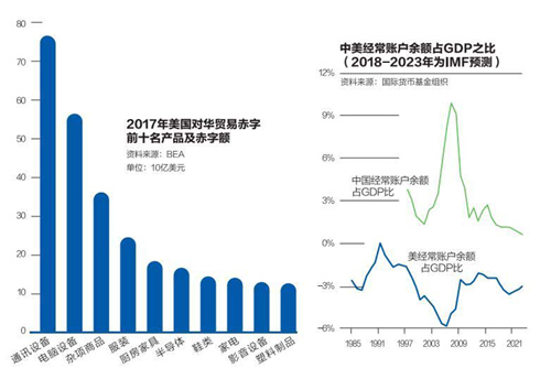 根据NX≡S-I(国民收入的恒等式),美国的贸易赤字将跟随财政赤字上升。IMF预测2020年美国经常账户赤字将占GDP的3.6%,比2017年提高1.2个百分点,2021~2023年经常账户赤字仍持续超过GDP的3%。扣除对外投资净收益(相当于GDP的0.5%)后,贸易赤字比经常账户赤字还要大。