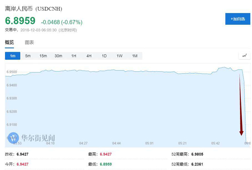G20峰会传出中美贸易相关消息后,本周一盘初,离岸人民币高涨。