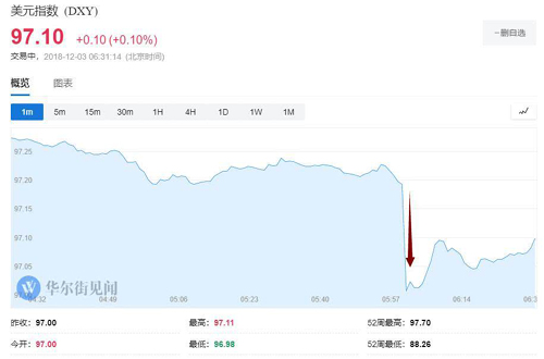 美元指数盘初一度跌破97.0,后略有反弹,重上97.10。