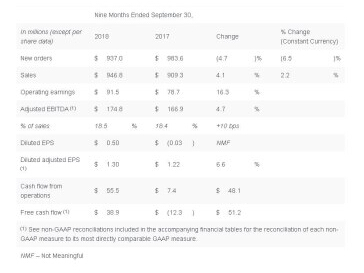 截至2018年第三季度,销售额9.4680亿美元,去年同期为9.993亿美元,同比增长4.1%(以汇率不变计算则为2.2%)。中国和印度的销售额增长均达到两位数。