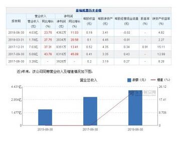 泰瑞机器8月21日最新公布的2018年中报显示,其营业收入为人民币4.03亿元,同比增长23.75%;