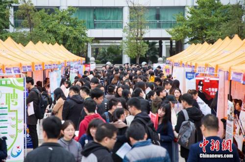 资料图:沈阳师范大学2019届毕业生春季大型就业双选会。 中新社记者 于海洋 摄