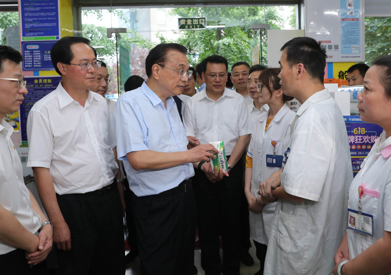 图为今年6月,李克强在浙江杭州考察期间,随机走访小区边上一家药店了解药品价格。