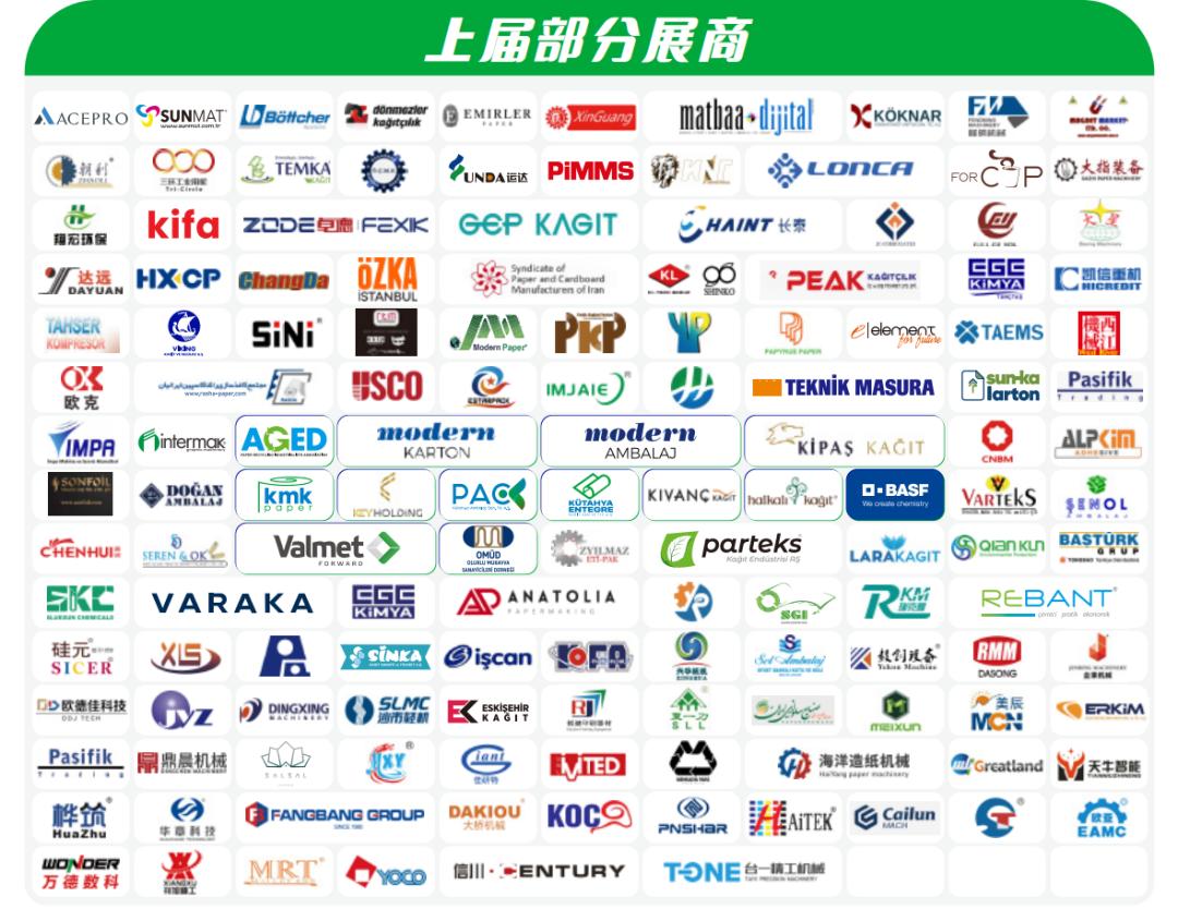 Modern Karton,Kipas, KMK, Halkali, Kivanc, BASF,BÖTTCHER等行业巨头确认参展,200家展商将共同见证这 一行业盛事。国际化平台再进阶,观众人数突破8,800+人,覆盖阿尔及利亚、沙特、印度、波兰等68余国,覆盖电子、 家具、食品、日化等终端行业。